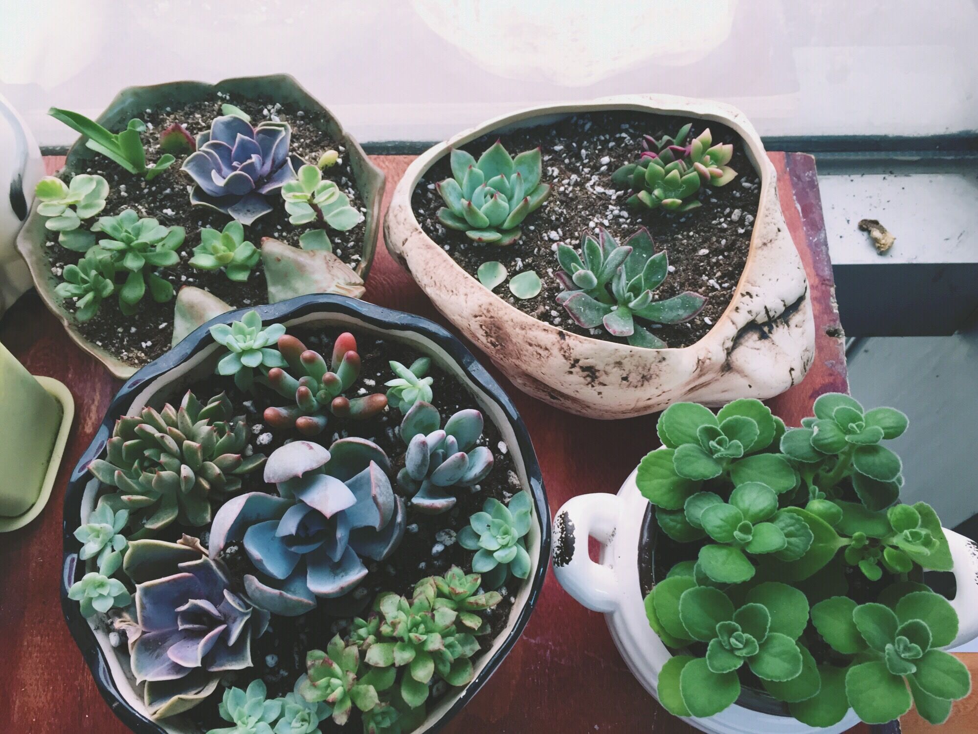 從剛開始的一盆、兩盆、三盆……到現(xiàn)在映滿眼簾的抹抹綠意,自從辦公室來了“徐植醫(yī)”,窗臺上漸漸擺滿了各種各樣的盆栽。對于號稱“植物殺手”的我們而言,“徐植醫(yī)”可謂是神一般的存在。幾近枯萎的植物經(jīng)“徐植醫(yī)”之手,總能起死回生;枝枝葉葉,隨手一扦插又是一個新的生命;無論是種植的多肉,還是開出來的花,看上去都是肉嘟嘟、鮮嫩嫩的,充滿了生命力。
