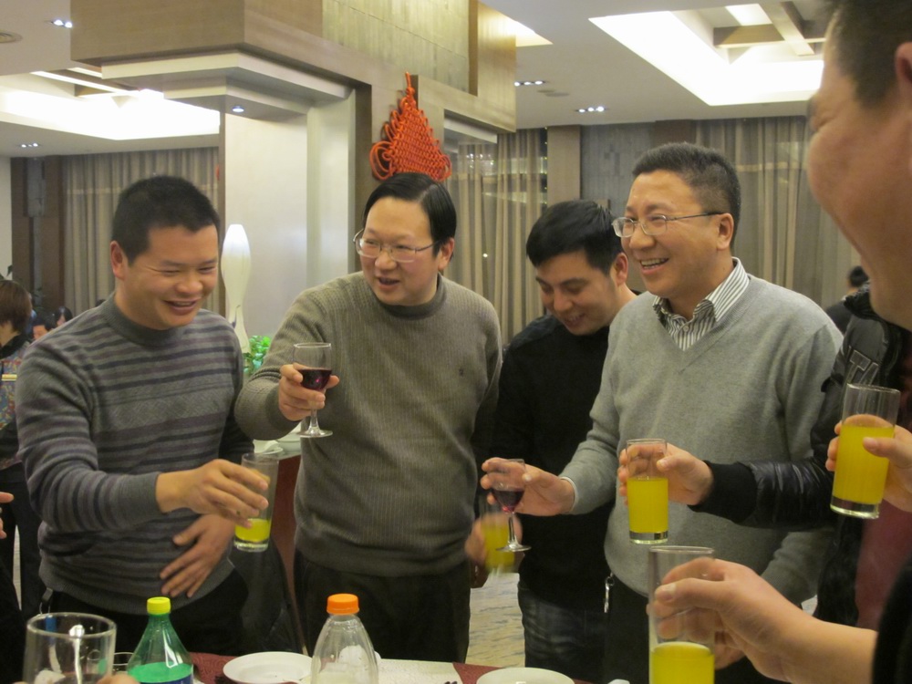 開宴后,建設(shè)局領(lǐng)導(dǎo)和公司領(lǐng)導(dǎo)端起酒杯來到每張酒桌前,向各位員工敬酒,對大家一年來的辛勤工作表示感謝,員工們也一一站起來,舉杯回敬。與此同時,各個部門的工作人員也紛紛端起酒杯,向其他部門員工敬酒,感謝他們對自己部門工作的支持和配合。年夜飯成了公司員工互相交流、增進感情的一個很好平臺,大家互敬一杯酒,共敘濃濃情。