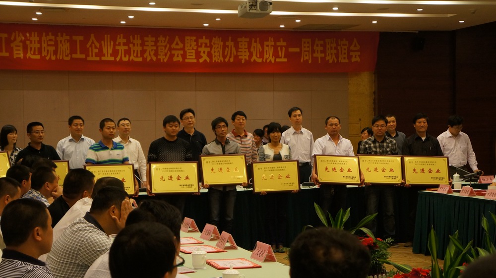 會(huì)議中,各級(jí)領(lǐng)導(dǎo)充分肯定浙江省進(jìn)皖施工企業(yè)取得的成績(jī),清醒分析出浙江省施工企業(yè)出省施工面臨的問(wèn)題以及進(jìn)一步開(kāi)創(chuàng)浙江省建筑業(yè)“走出去”發(fā)展新局面的措施。在企業(yè)交流會(huì)上,我公司榮獲“2011年浙江省進(jìn)皖企業(yè)先進(jìn)企業(yè)”,其中王偉堅(jiān)同志獲得“2011年浙江省進(jìn)皖企業(yè)先進(jìn)個(gè)人”。浙江大經(jīng)建設(shè)集團(tuán)股份有限公司得到浙江省建筑業(yè)管理局吳偉民副局長(zhǎng)的充分肯定,是浙江省801家進(jìn)皖建筑業(yè)企業(yè)中超10億元的七家單位之一,是浙江省進(jìn)皖建筑大軍的主力軍。