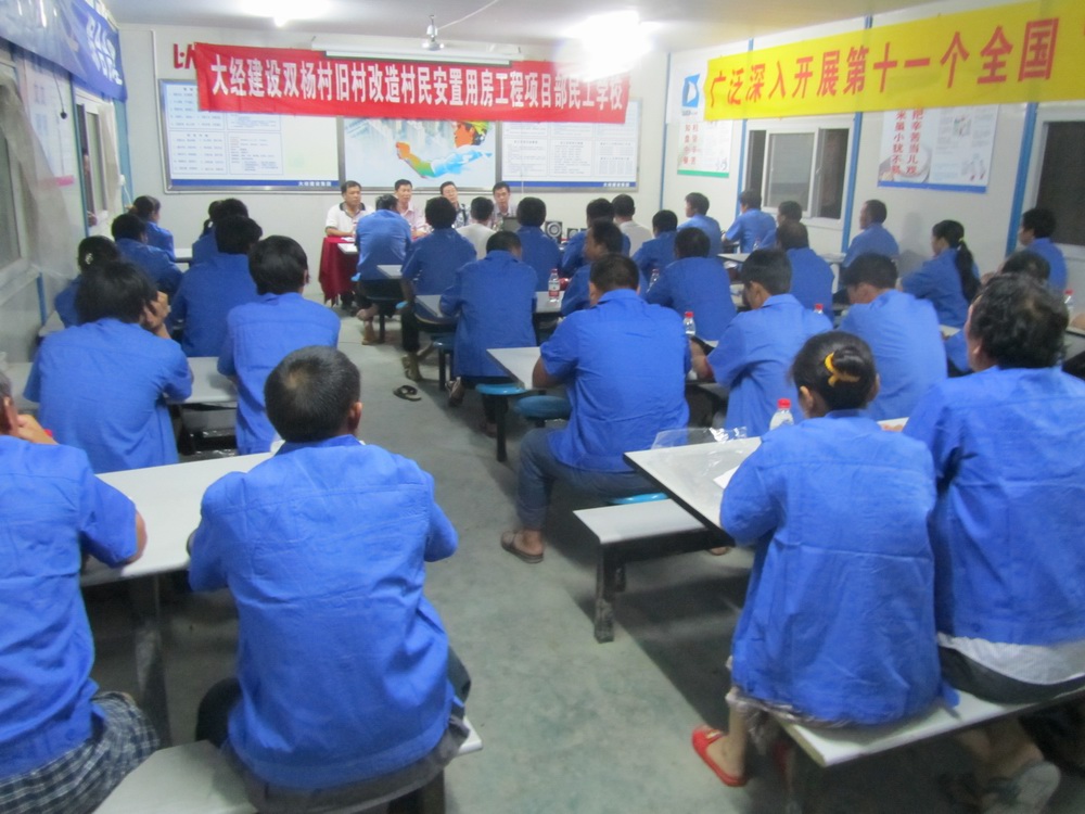 由于人數(shù)和教學(xué)環(huán)境的原因,此次在建農(nóng)民工學(xué)校的首堂課就開在雙楊村舊村改造村民安置用房項(xiàng)目部的食堂里。“施工也應(yīng)知行結(jié)合,來我們工地施工的大多只有小學(xué)到初中文化程度,公建方面的理論知識(shí)并不扎實(shí),我們希望通過這種形式,開拓他們的眼界,提高技術(shù)能力,夯實(shí)我們建筑的基礎(chǔ)?!表?xiàng)目負(fù)責(zé)人周衍錢告訴記者,農(nóng)民工業(yè)余學(xué)校將是一項(xiàng)長(zhǎng)期而繁瑣的工作,農(nóng)民工教育培訓(xùn)活動(dòng)將通過聘請(qǐng)有關(guān)專家講課、放映學(xué)習(xí)光盤等形式,從思想道德、法律法規(guī)、依法維權(quán)、施工安全生產(chǎn)、專業(yè)技能等方面對(duì)農(nóng)民工進(jìn)行系統(tǒng)教育培訓(xùn),促使其對(duì)自身和工作正確定位,提高文化水平和職業(yè)技能水平,真正將業(yè)余學(xué)校辦成農(nóng)民工提高素質(zhì)的“加油站”。