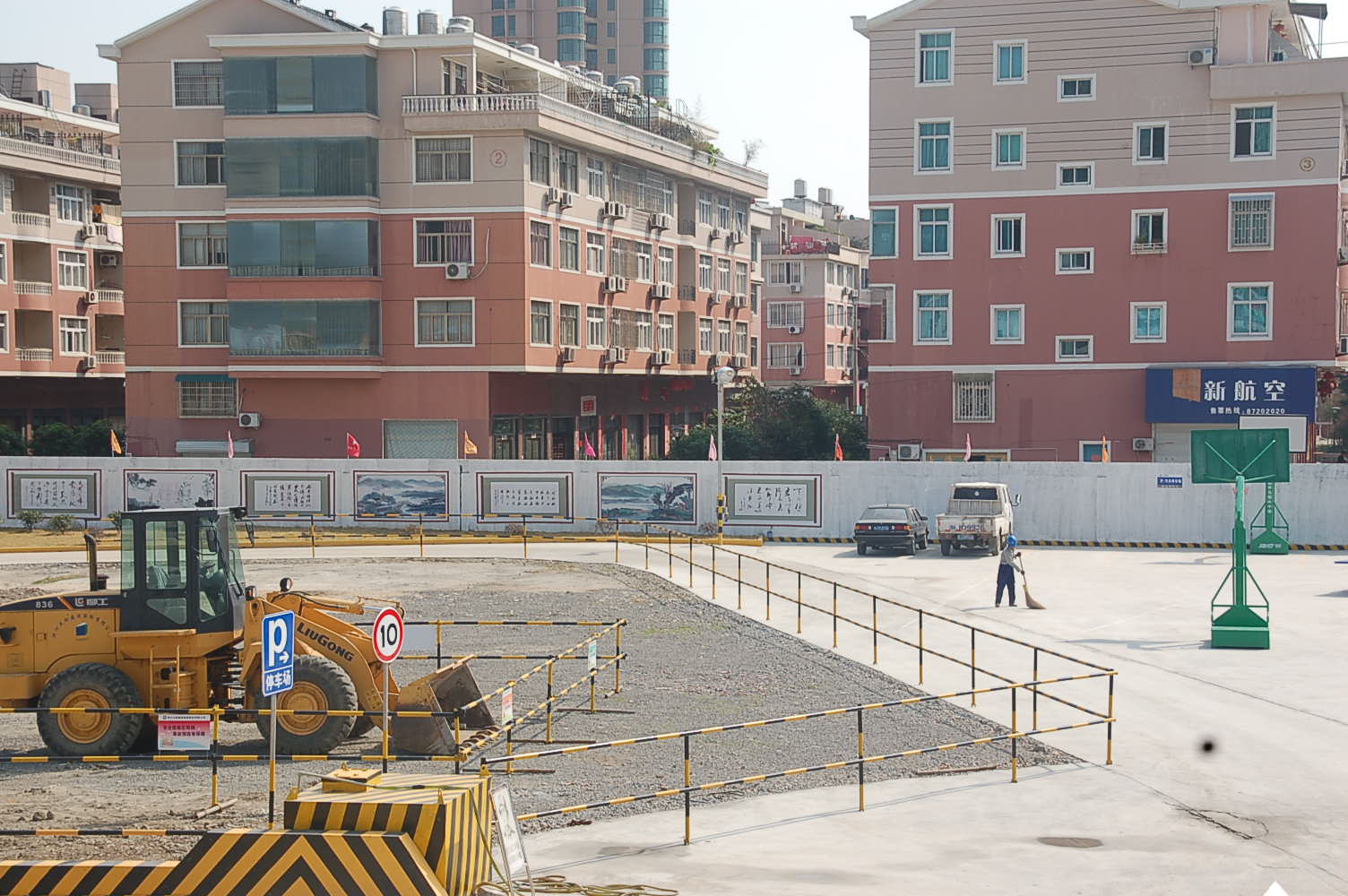 在現(xiàn)場,城管執(zhí)法人員看到,工地外圍的圍墻上噴繪了醒目的安全質(zhì)量宣傳漫畫、安全生產(chǎn)標語;一位保潔員正在沖洗一輛渣土運輸車的車身、輪胎,確保凈車出門。整個施工現(xiàn)場道路暢通,建筑材料堆放整齊,現(xiàn)場作業(yè)人員都統(tǒng)一佩戴了安全帽和工作證。施工區(qū)、辦公區(qū)、生活區(qū)用安全圍欄進行了隔離,生活區(qū)的住房采用了園林式建筑模式,沒有了民工的工棚房,并建設了一個籃球場,大大改善了民工居住條件。