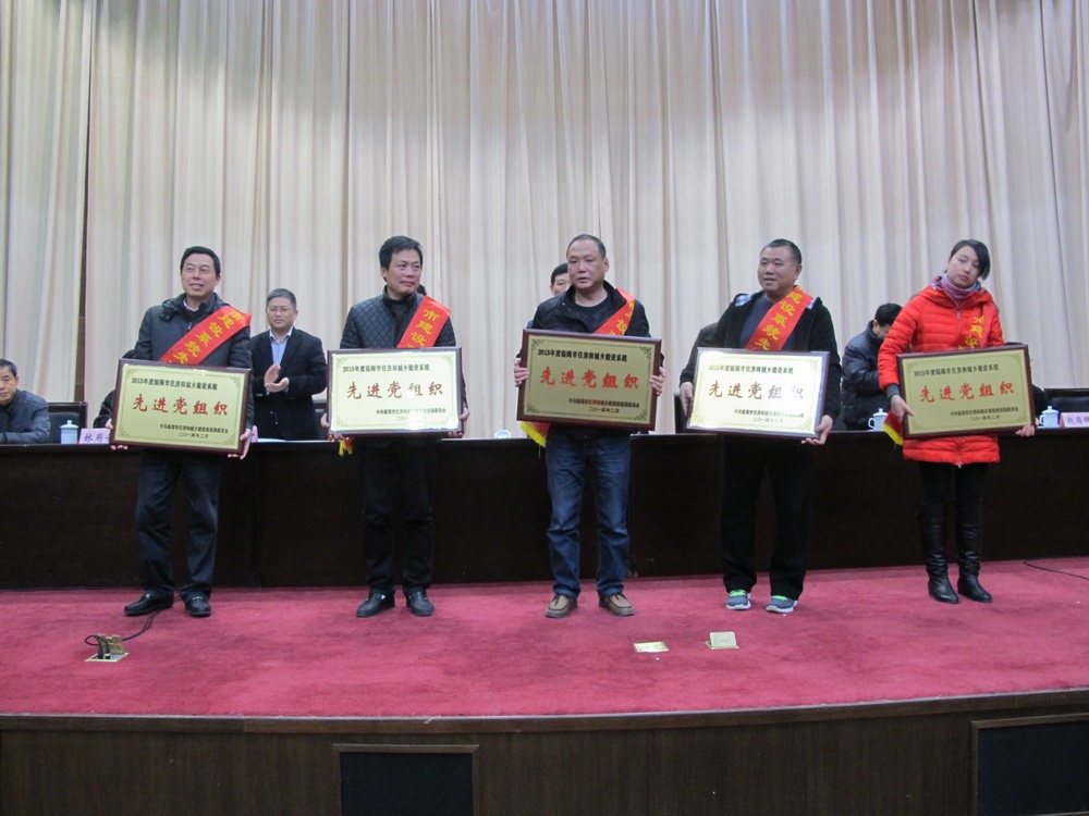 會(huì)議表彰了2013年度為臨海市城市建設(shè)作出突出貢獻(xiàn)的先進(jìn)單位和先進(jìn)個(gè)人,并舉行了隆重的頒獎(jiǎng)儀式。大經(jīng)集團(tuán)黨委被評(píng)為2013年度臨海市建設(shè)系統(tǒng)先進(jìn)黨組織,戴靈健、金呂標(biāo)、盧益軍、胡強(qiáng)被評(píng)為2013年度臨海市建設(shè)系統(tǒng)優(yōu)秀黨員,吳杰、楊高、胡國(guó)明、陳俊、蔣永平、王勤選獲得2013年度市建設(shè)系統(tǒng)先進(jìn)工作者稱號(hào)。