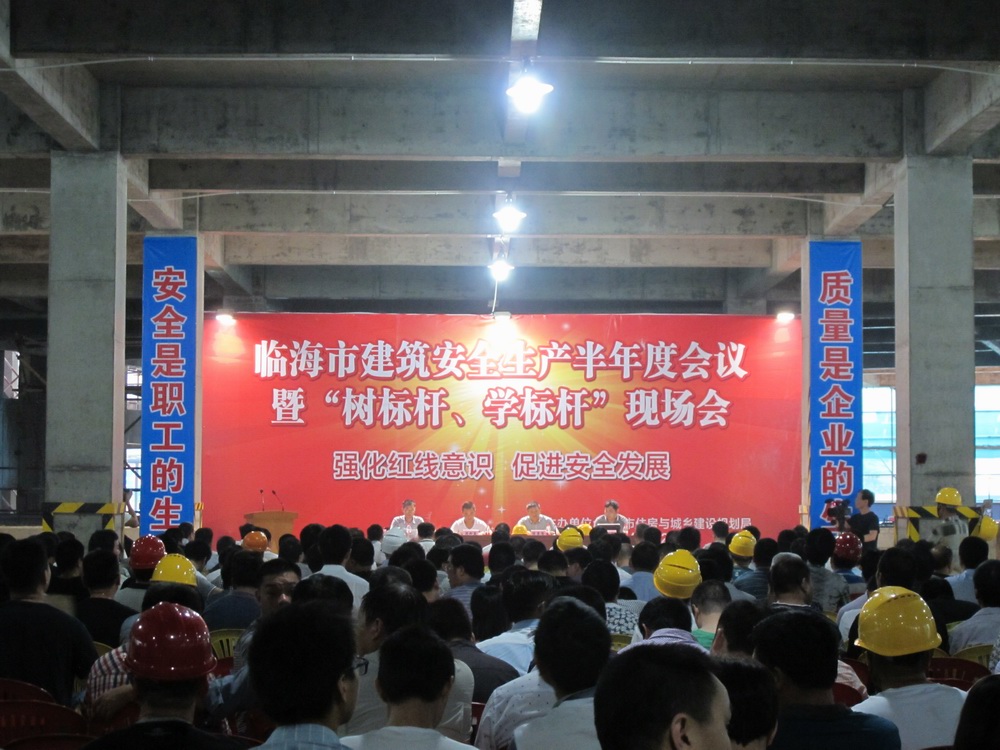 6月27日,臨海市住房與城鄉(xiāng)規(guī)劃局組織在我集團公司承建施工的朗成大時代商住樓項目(2#、辦公樓、商業(yè)綜合樓)現(xiàn)場召開臨海市建筑安全生產(chǎn)半年度會議暨“學(xué)標桿、樹標桿”現(xiàn)場會,臨海市房屋建筑施工總承包企業(yè)的主要負責(zé)人、分管質(zhì)量安全負責(zé)人、監(jiān)理企業(yè)主要負責(zé)人、在臨施工外地企業(yè)分管質(zhì)量安全生產(chǎn)負責(zé)人及駐臨監(jiān)理企業(yè)負責(zé)人、在建工程項目負責(zé)人及項目總監(jiān)等近300余人參加了此次現(xiàn)場會。會議由市質(zhì)量監(jiān)督站站長葉青主持,參加會議的領(lǐng)導(dǎo)有市住建局副局長陳勇智、市安監(jiān)局副局長周邦春、市建筑業(yè)管理局副局長李春等。