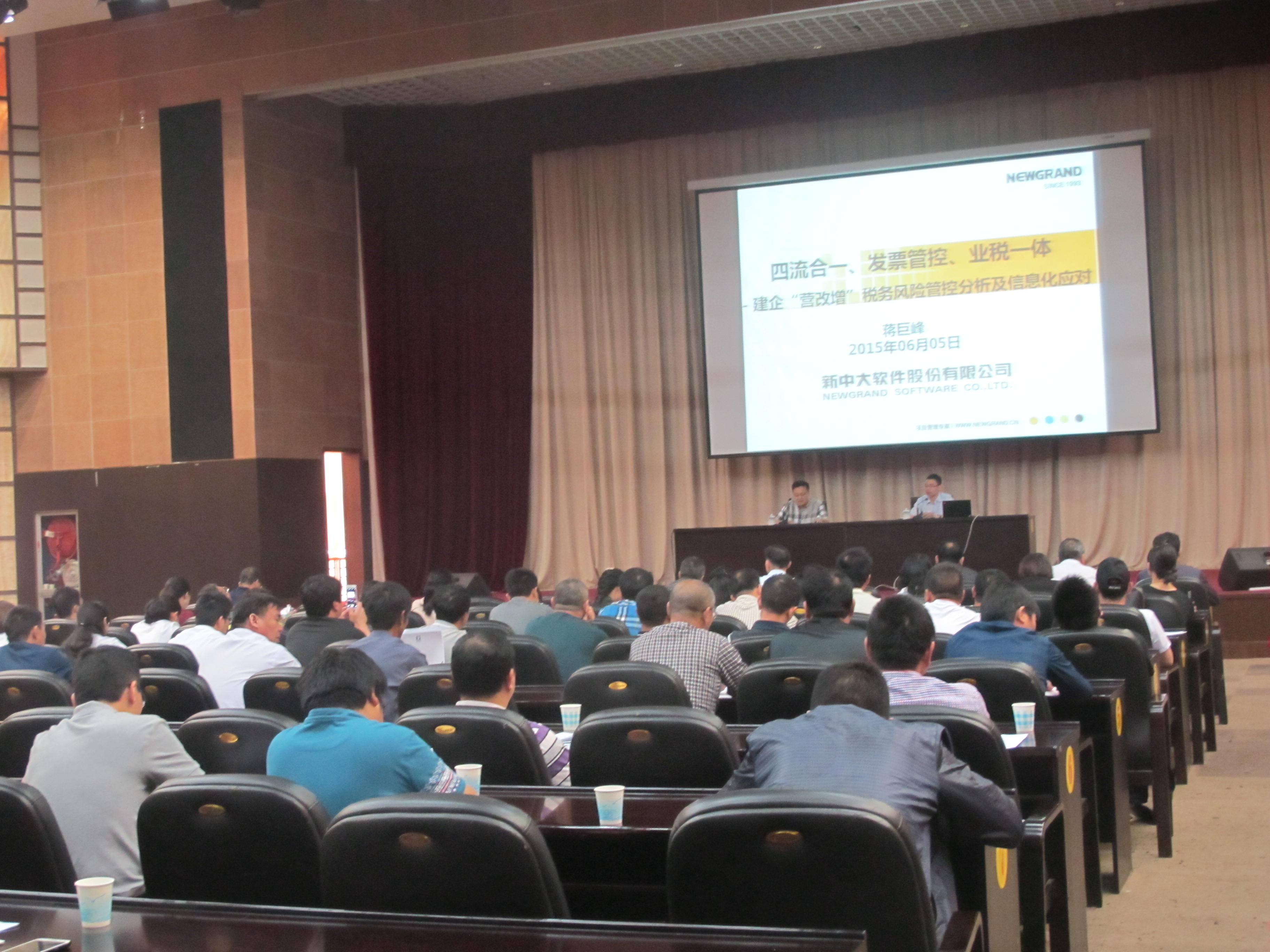 6月 5日上午,在臨海市建設(shè)大樓3樓多功能會(huì)議室,舉辦建筑業(yè)“營改增”稅務(wù)風(fēng)險(xiǎn)管控分析及信息化應(yīng)對研討會(huì)議。本次會(huì)議的主辦方浙江大經(jīng)建設(shè)集團(tuán)股份有限公司在臨海市建設(shè)局領(lǐng)導(dǎo)的大力支持下,聯(lián)合新中大軟件股份有限公司對建筑企業(yè)“營改增”的“四流合一、發(fā)票管控、業(yè)財(cái)一體”帶來的風(fēng)險(xiǎn)規(guī)避、稅務(wù)應(yīng)對、其他內(nèi)部調(diào)控、管理風(fēng)險(xiǎn)應(yīng)對等進(jìn)行全面的分析。參加此次會(huì)議的有:溫嶺建工處、臨海市建設(shè)局、臨海市建工處、天頌建設(shè)、臨海四建、匯經(jīng)建設(shè)、海成集團(tuán)、偉星房產(chǎn)、大經(jīng)建設(shè)集團(tuán)(董事長、副總經(jīng)理、三總師及相關(guān)部門人員及各項(xiàng)目經(jīng)理)等共110人。
