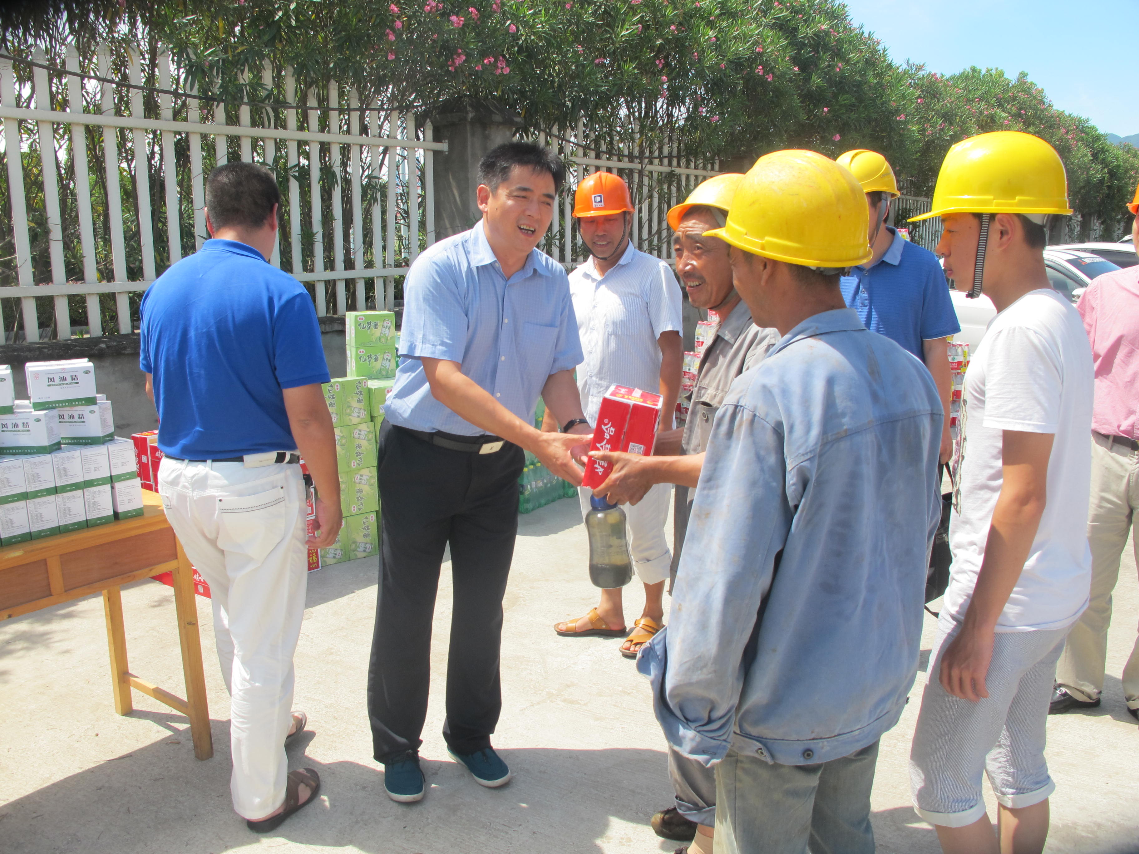 進(jìn)入大暑后,我市溫度持續(xù)走高。7月30日下午,臺(tái)州市總工會(huì)一行人來(lái)到我公司臨海市社會(huì)管理應(yīng)急聯(lián)動(dòng)指揮用房、交警大隊(duì)業(yè)務(wù)技術(shù)用房及交警便民服務(wù)大廳建設(shè)工程項(xiàng)目部開展送清涼慰問(wèn)活動(dòng),為堅(jiān)持工作在高溫一線的職工送上礦泉水、飲料和花露水等防暑降溫用品。
