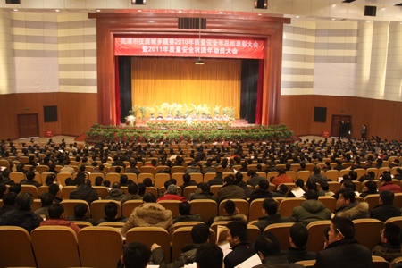 大會(huì)對(duì)上年度建筑業(yè)安全質(zhì)量先進(jìn)企業(yè)進(jìn)行頒獎(jiǎng)表彰,大經(jīng)公司在蕪湖各工程施工程序規(guī)范、安全生產(chǎn)管理到位、施工組織與質(zhì)量控制表現(xiàn)突出,根據(jù)《蕪湖市建筑行業(yè)先進(jìn)企業(yè)評(píng)選辦法》、《蕪湖市建設(shè)工程質(zhì)量?jī)?yōu)勝企業(yè)評(píng)選辦法》,被市建委評(píng)為“蕪湖市建筑業(yè)2010年度安全質(zhì)量先進(jìn)企業(yè)”(蕪市建[2011]5號(hào)文件)。